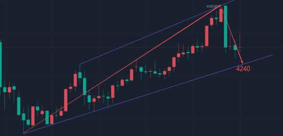 从日线观察,金价大级别走了“N”上升形态,整体徘徊在布林带中轨上方运行,中间虽然有几次下破布林带中轨程度回调,但是很快也重新站上了中轨上方,从周五收盘上看,金价在拉升后出现了深度跳水,整体也是收取了十字星形态,通常情况下在上升或下降趋势中出现十字星,市场需要进入了一个短暂的震荡整理阶段,这样需要密切关注周一开盘的反转信号,从上升通道形态看,下方上升支撑在4240, 下周如果金价弱势到这个位置可以做短多,从均线上观察,5日和10日均线交叉拐头向下,价格整体停盘在20日均线4324附近的位置,这样的均线波动形态,短期我还是偏向看一个回调,从技术指标观察,MACD整体运行在零轴上方的位置,绿色动能放量,双线交叉向下,KDJ三线粘合向下发散;综合年线和日线级别得出结论,年线大级别还是看多头强势,日线需要一波震荡区间整理的回调;